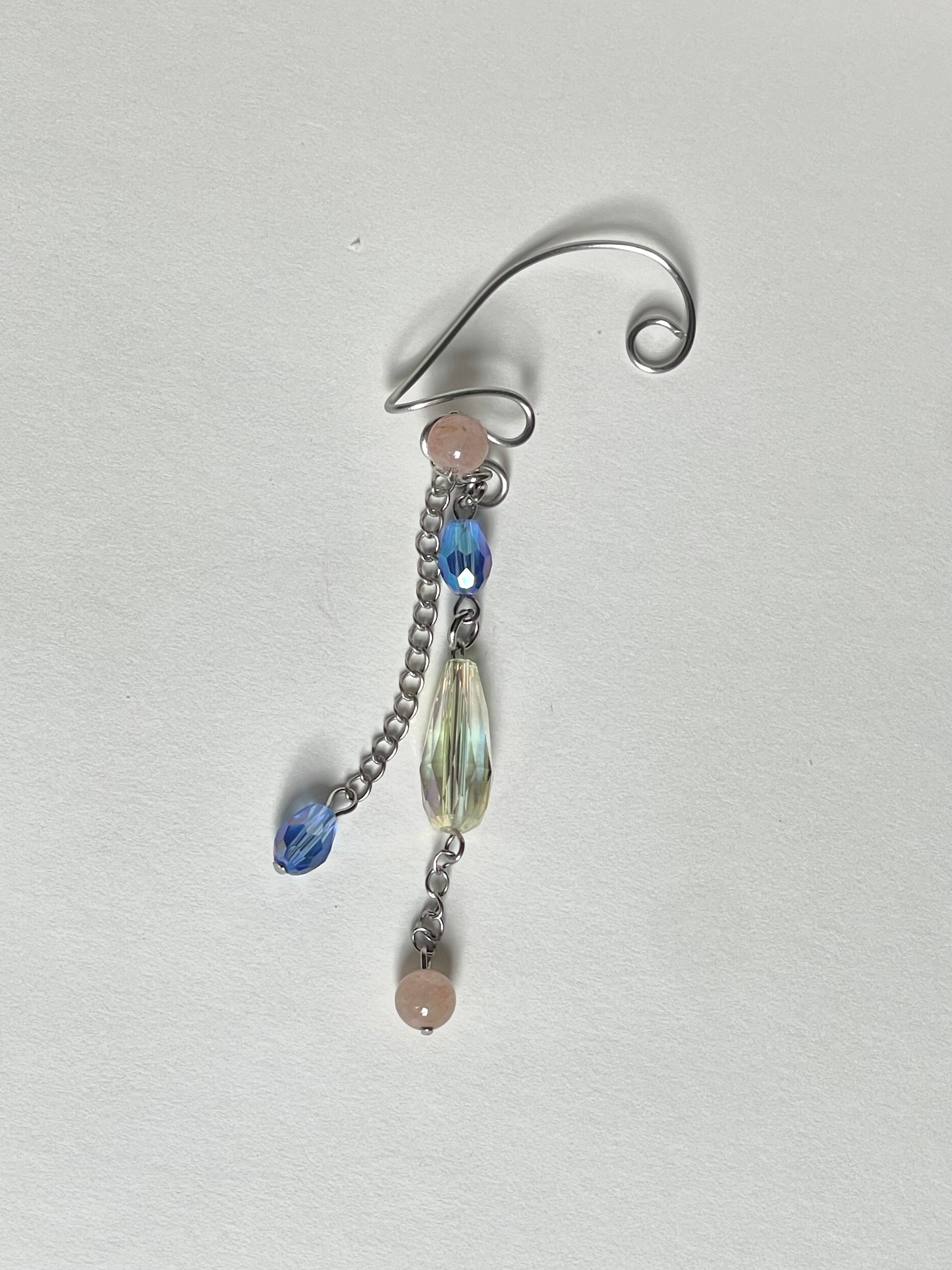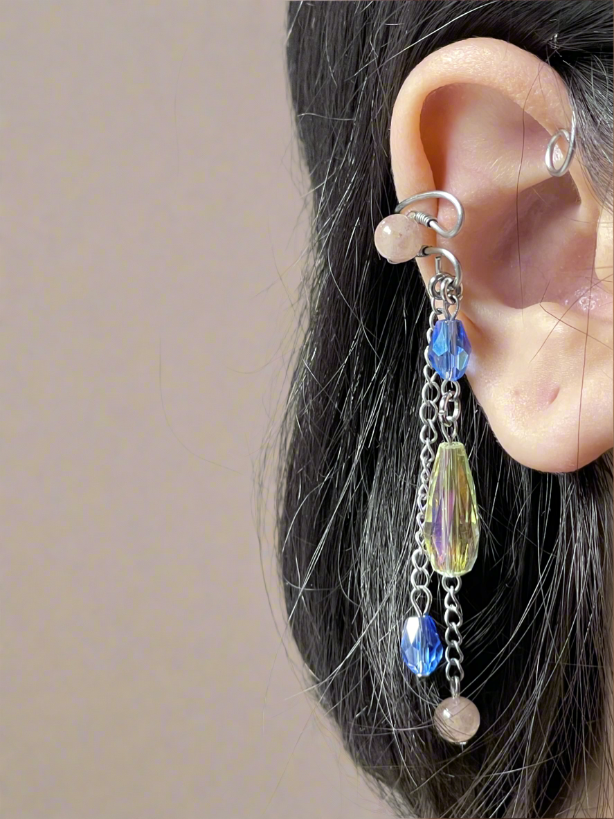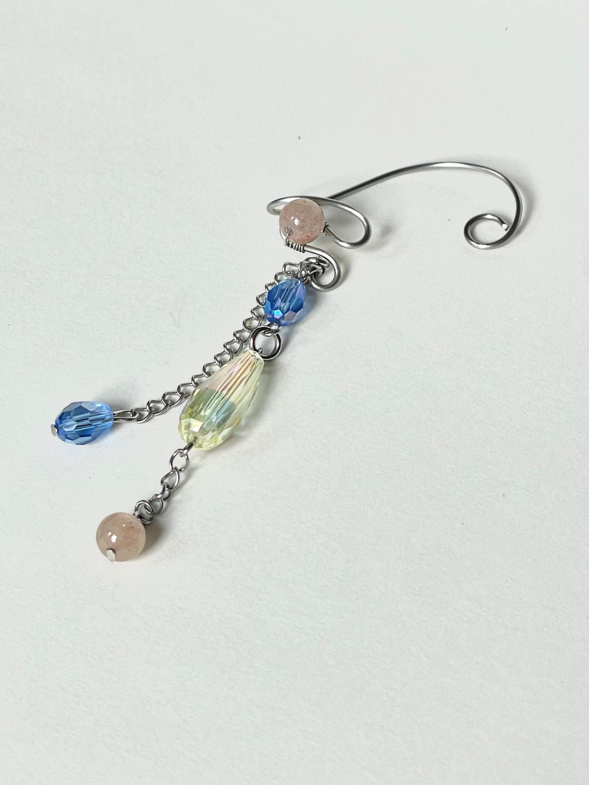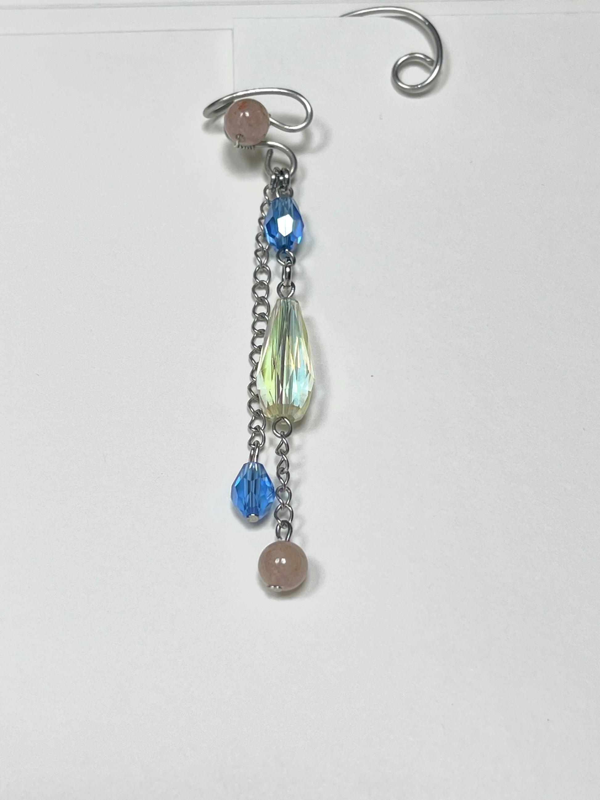 Made With Stainless Steel Wire, Strawberry Quartz, Blue Tear Drop Glass Beads, And Rose Yellow Tear Drop Glass Bead.