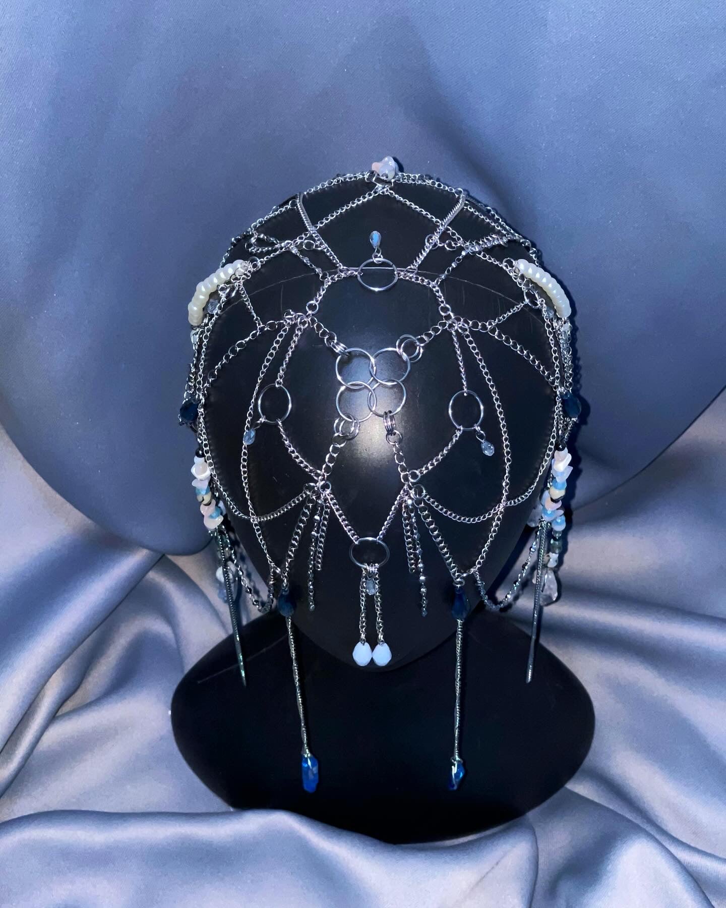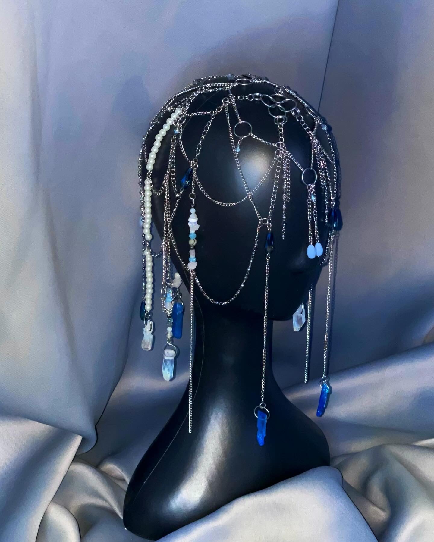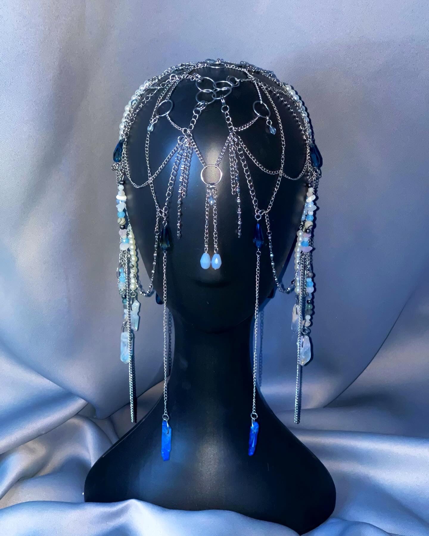 Let this head piece evoke a sense of wonder and beauty, with its mesmerizing blue hues and intricate design. Embrace the magic and experience the allure of this stunning accessory.