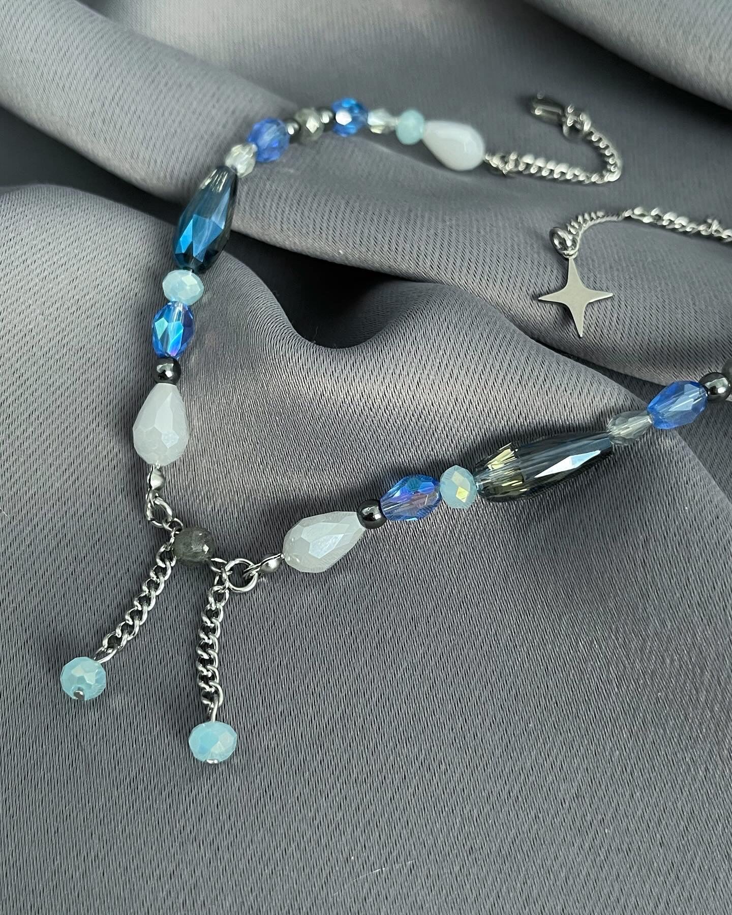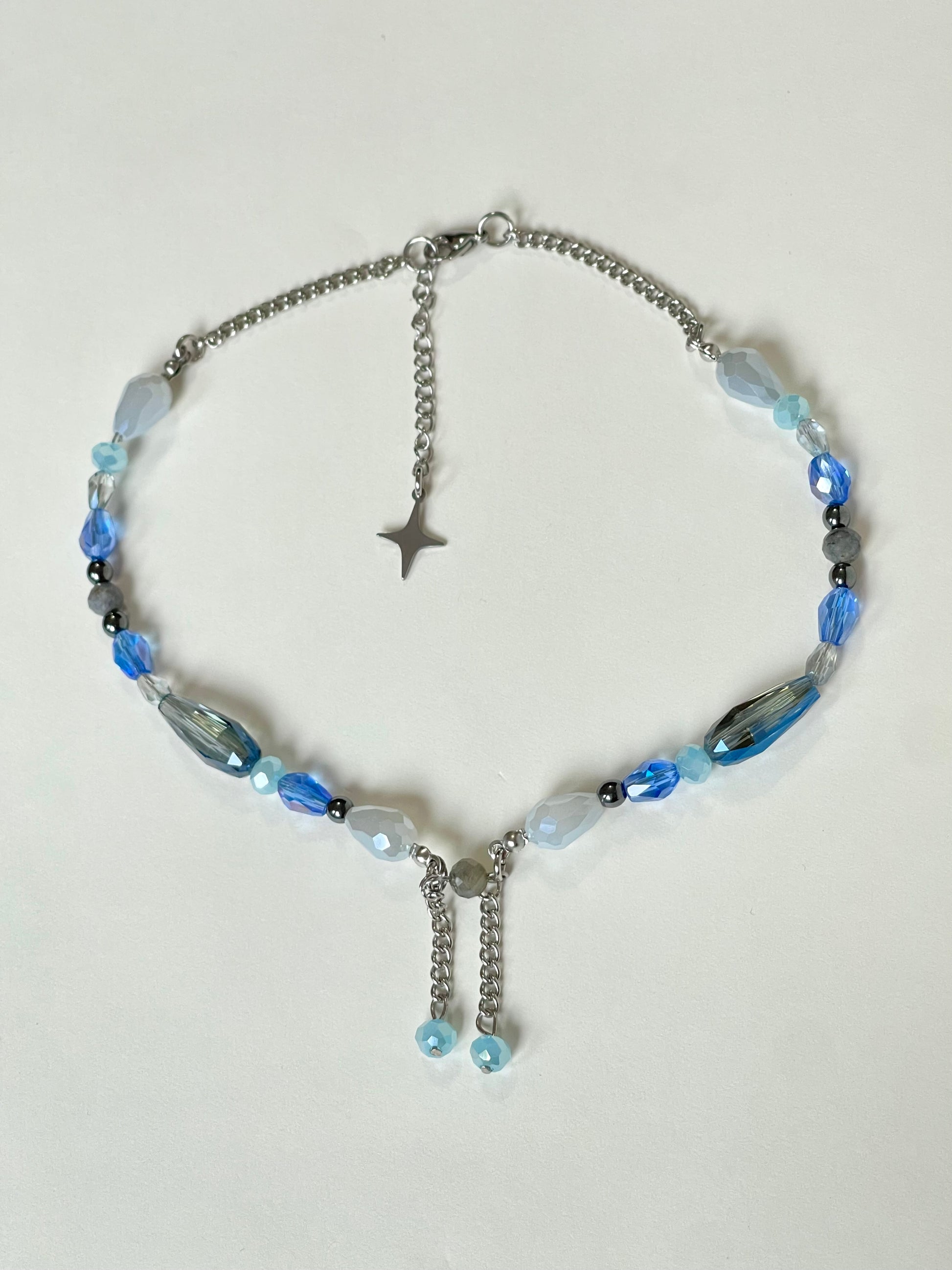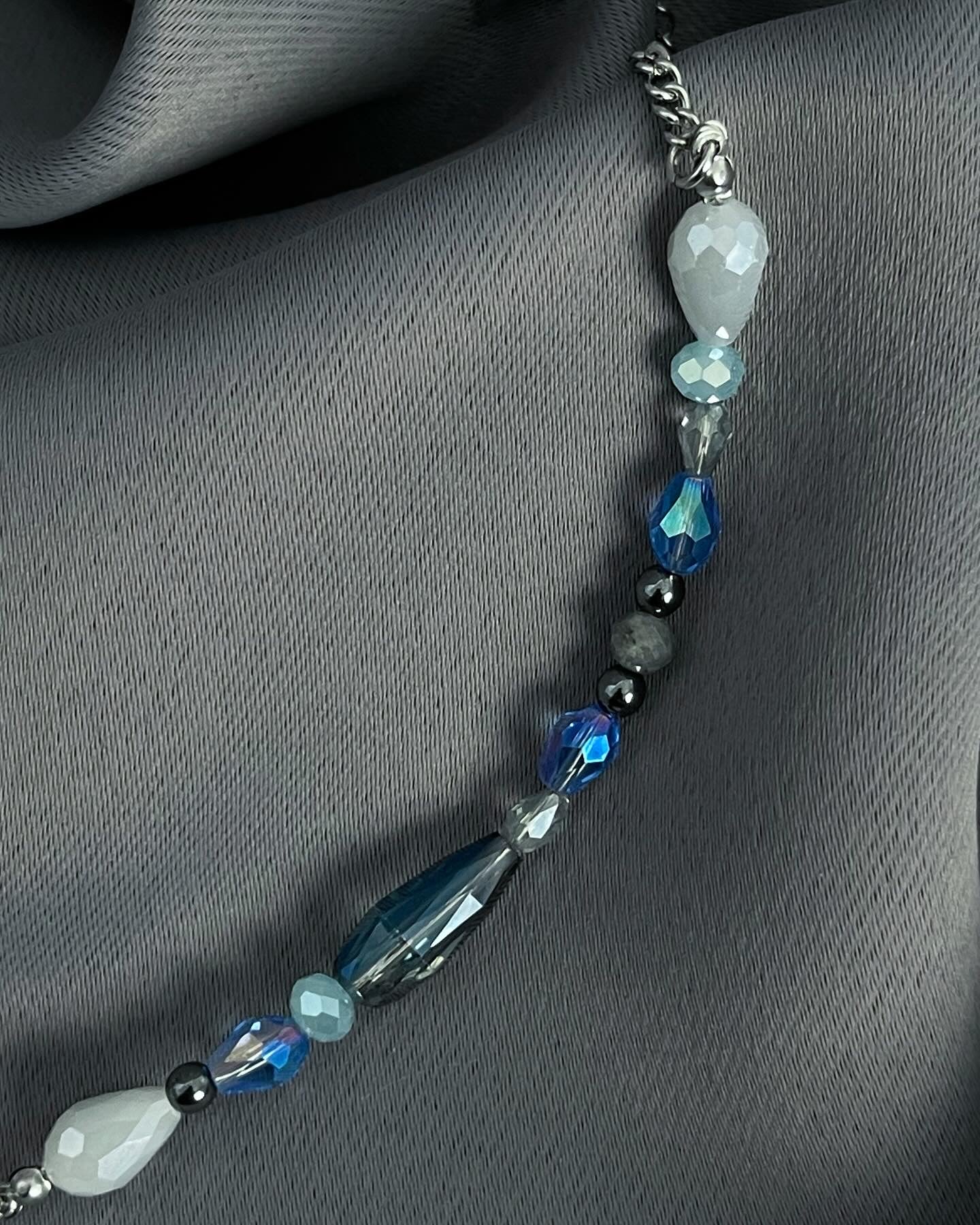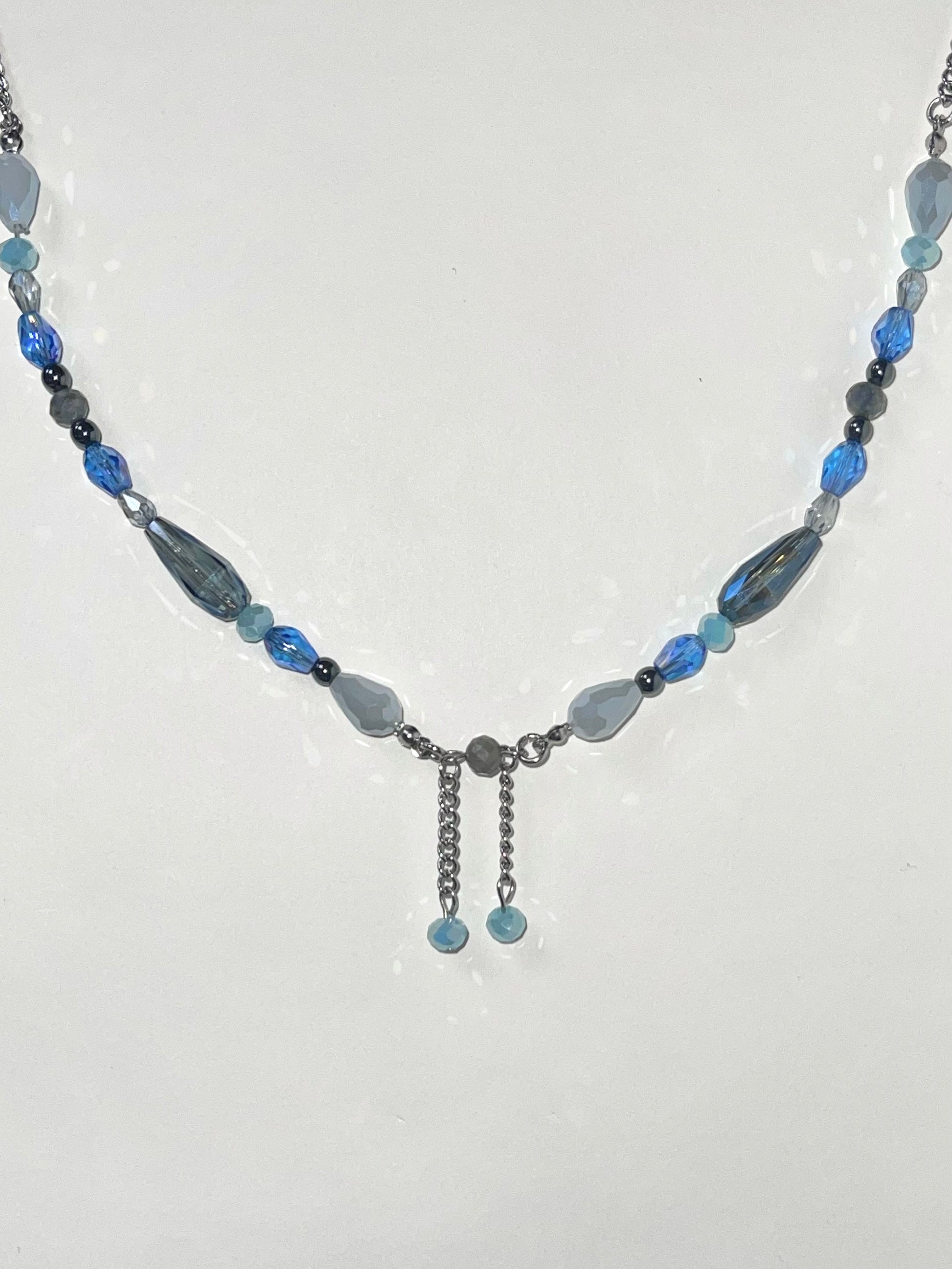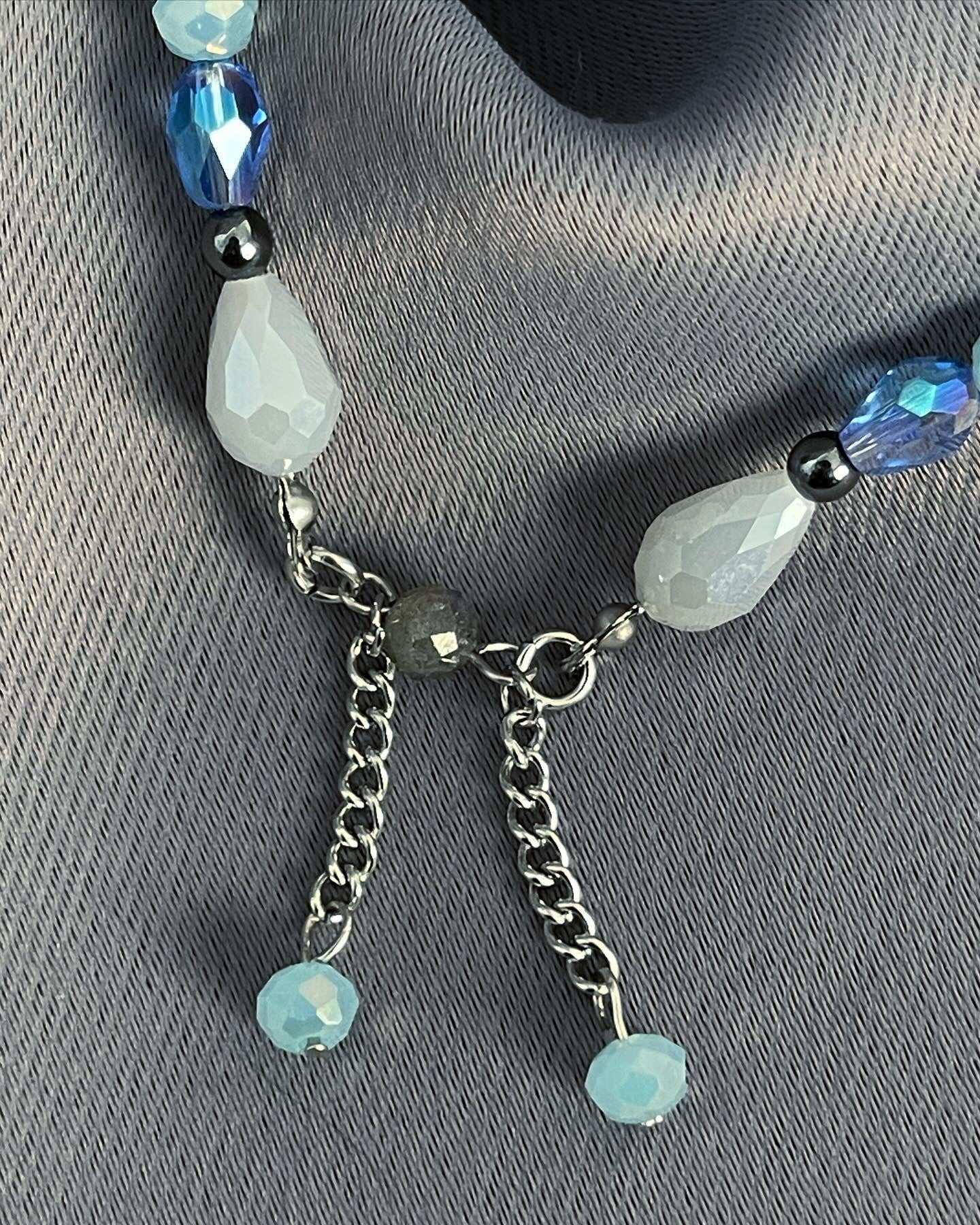 Made With Gray Labradorite, Black Hematite, Ink Blue Tear Drop Beads, Blue Tear Drop Beads, Light Gray Tear Drop Beads, Transparent Gray Tear Drop Beads And Blue Glass Beads.