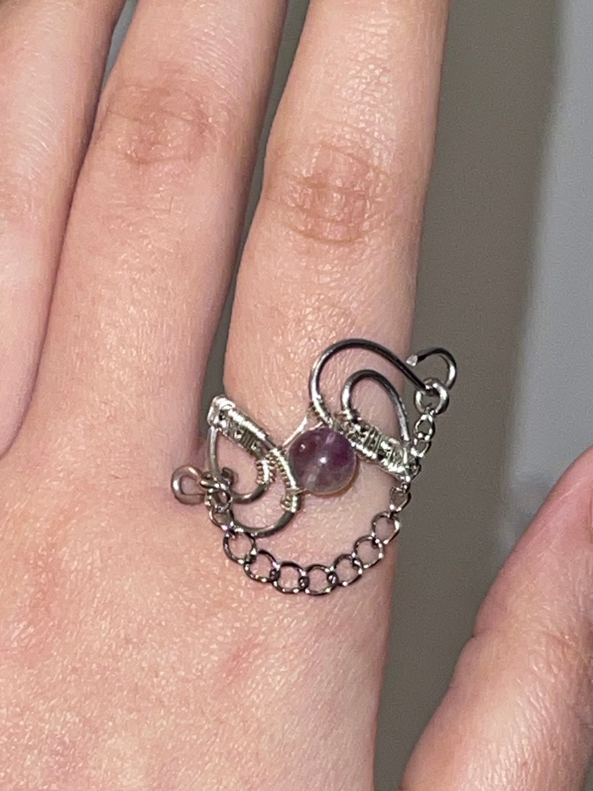 Made With Chevron Flower Amethyst, Stainless Steel Wire & Chains, And Silver Copper Wire.